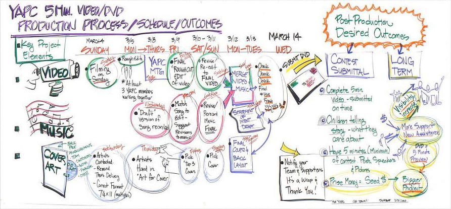 ![]() Production map outlining next steps and critical actions guiding a student team through successful completion for a video production and competition entry effort. | |||